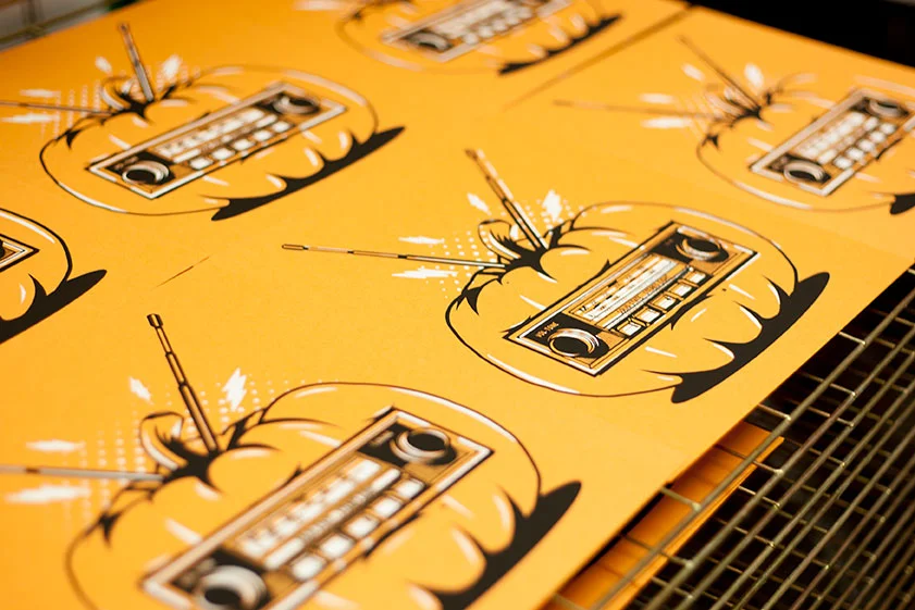 Happy Halloween from Jupiter Visual. 2 color flat stock prints from the Oct 25 2014 screen printing class at the Jupiter Visual Studio.
