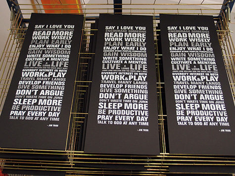 This print is one I designed for a friend based on a list of personal resolutions her father created. 8×20. Silver and white on black stock. Some good wisdom to be found in there.