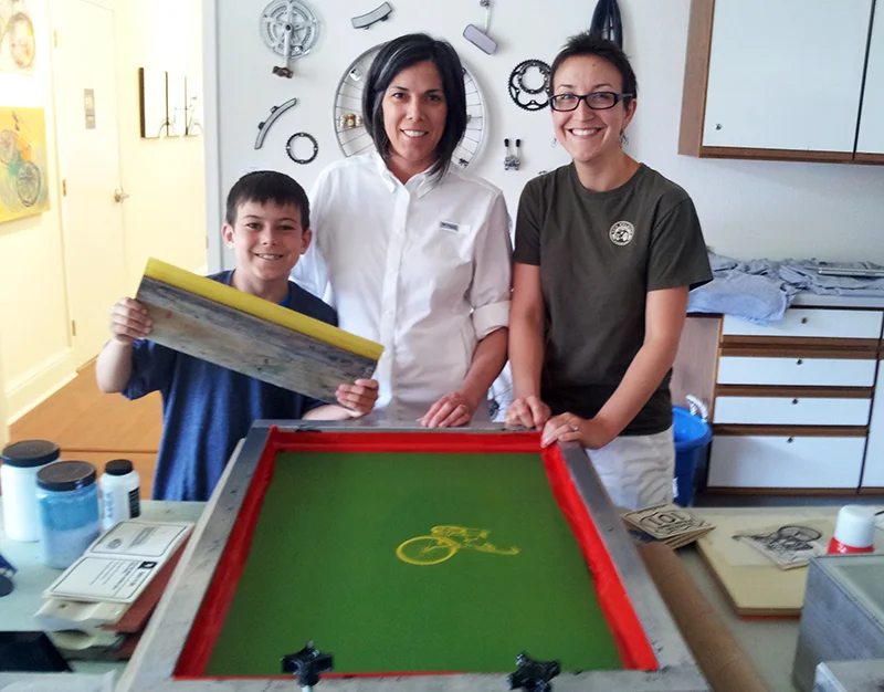 Good time hosting the Screen Printing 101 Bicycle Edition class at Fire House Art Center as part of Bike Month in Longmont. The gallery is currently showing a Bicycle Art Exhibition featuring work by Jupiter Visual and other local artists. The show runs until June 30th.