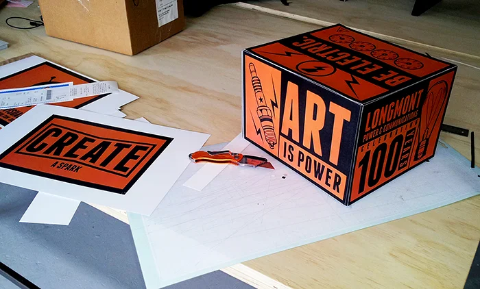 Wrapping up a proposal model for the Longmont Shock Art Project. Winning designs will be painted on electric utility boxes in Longmont During August. Public voting will be at The Longmont Museum and Cultural Center until June 24th. Stop by and vote!
